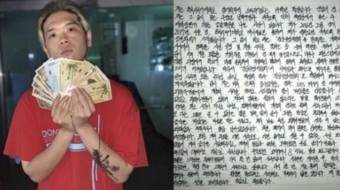 해당 모습은 킹치메인이 작성한 자필 사과문으로 유명하며, 공개 당시 킹치메인의 단톡방 성희롱 논란이 재조명되며 큰 관심을 모은 바 있다.