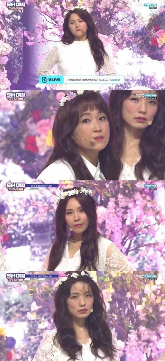 21일 방송된 MBC 뮤직 음악 프로그램 '쇼! 챔피언'에서는 '안 본 눈 삽니다(Narr. 설현)'의 무대를 꾸미는 셀럽파이브의 모습이 담겼다.