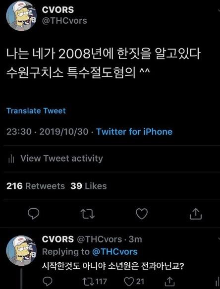 이어 "시작한 것도 아니야 소년원은 전과아닌교?"라고 적었다.