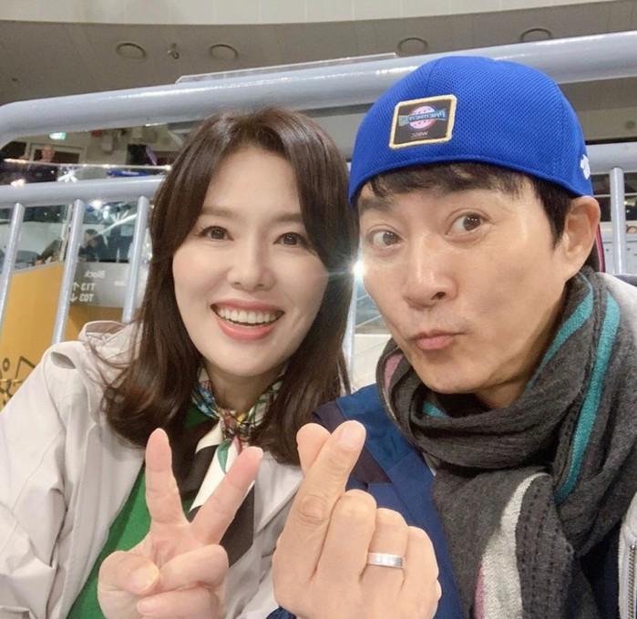 공개된 사진 속 최수종은 고척돔 야구장에서 하희라와 손하트를 그리며 카메라에 포착됐다.