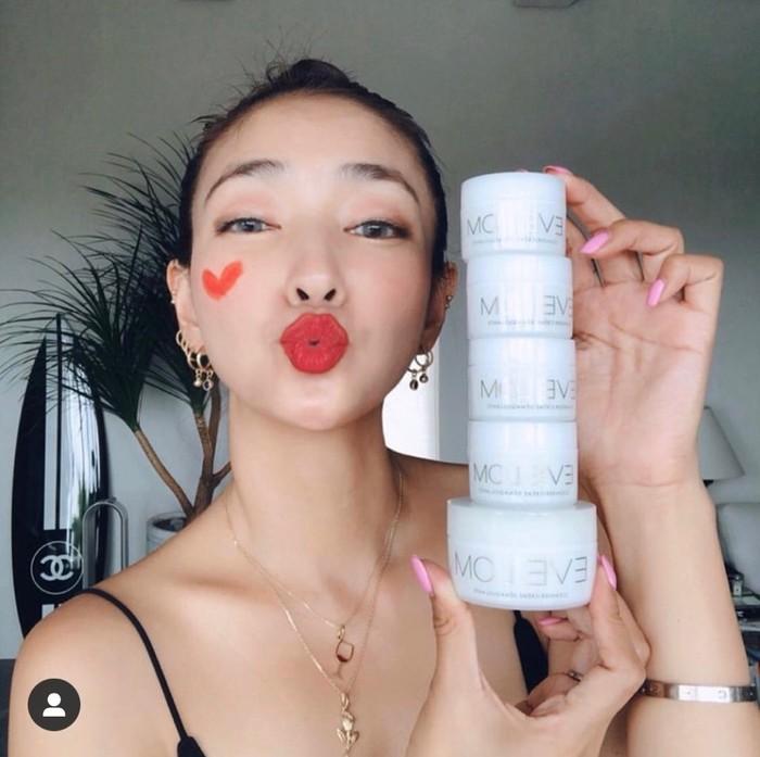 공개된 사진 속 진재영은 화장품을 손에 들고 카메라를 쳐다보고 있다.