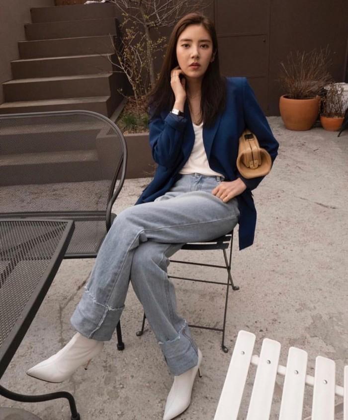 공개된 사진 속 손담비는 야외에서 의자에 앉아 턱을 괴고 카메라를 쳐다보고 있는 모습이다.