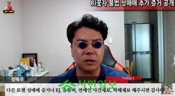 정배우는 이를 폭로하는 이유에 대해 “성매매는 불법이다. 성매매는 범죄행위이고 엄중한 처벌이 내려지는 엄연한 불법행위다. 구독자가 약 50만 명으로 웬만한 연예인보다 인지도가 높은 꽃자 님이 불법 성매매에 가담하고도 아무렇지 않다는 듯 방송하는 게 소름 돋는다”고 전했다.