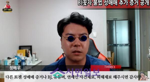 유튜버 정배우는 트랜스젠더로 알려진 BJ의 성매매 구설을 두고 폭로전을 벌인 바 있다. 정배우는 지난 8월 15일 증거로 주장하는 영상을 올려 누리꾼들의 시선을 사로잡았다.