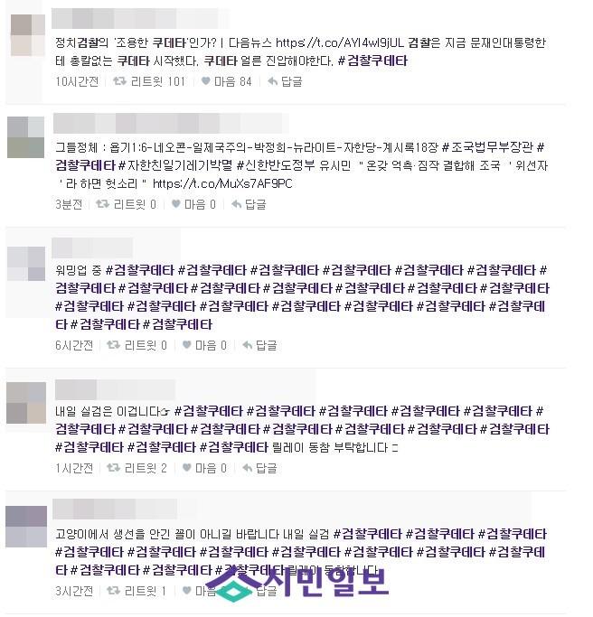 현재 '검찰 쿠데타' 검색어는 트위터를 이용하는 누리꾼들이 단체 행동을 통해 실시간 검색어로 급부상 시킨 것으로 알려지고 있다.