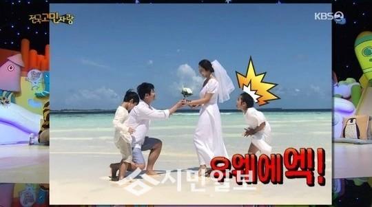신동엽은 "KBS에서 아빠로는 처음으로 육아휴직을 낸 사람이 최동석이다"고 인사를 건넸다. 이에 이영자는 "결혼한 지 10년 됐다더라. 기념해서 리마인드 웨딩 사진을 찍었다던데"라고 궁금해했다.