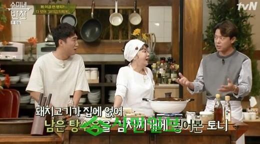 이어 토니안은 "저는 김치찌개에 탕수육을 넣는다. 돼지고기가 집에 없어서 탕수육을 넣는다. 반죽째로 넣는데 전분이 있어서 라면처럼 국물이 된다"라고 말해 눈길을 끌었다.