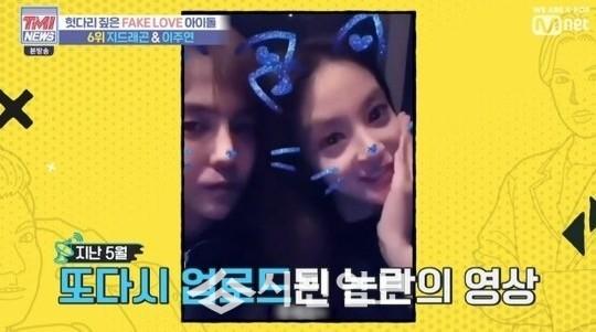 함께 찍은 동영상 어플로 화제를 모았던 지드래곤과 이주연은 2018년 1월 1일 같은 아파트에서 나와 다른 시간에 공항에 향한 정황이 포착되면서 또 한 번 열애설이 제기 됐다.