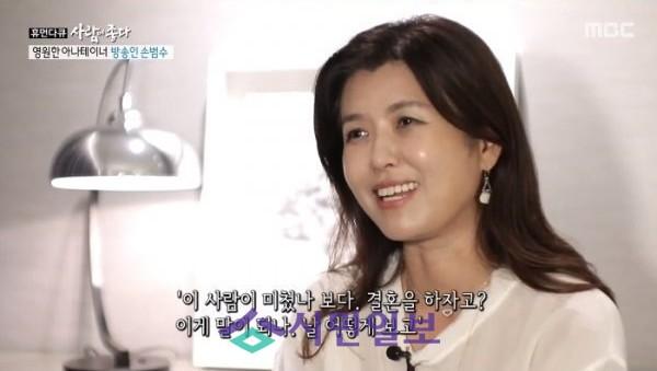 손범수는 이날 당시 KBS 후배 아나운서였던 진양혜에게 프러포즈했던 때를 회상하면서 “보름달 뜬 밤에 내심 용기 백배를 내서 프러포즈를 했다. 결혼을 하자고 했더니 정말 예상 밖의 반응을 보였다”고 말했다.