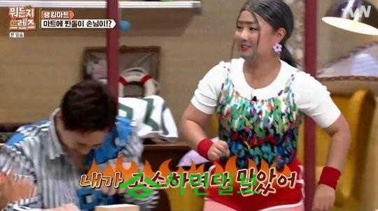 이에 허정민은 “예능에서 처음으로 키스한 여자 분인데 분장하고 다시 마주하니까 이상하다. 그때는 예쁘게 메이크업했었는데”라고 박나래의 분장에 당황했다.