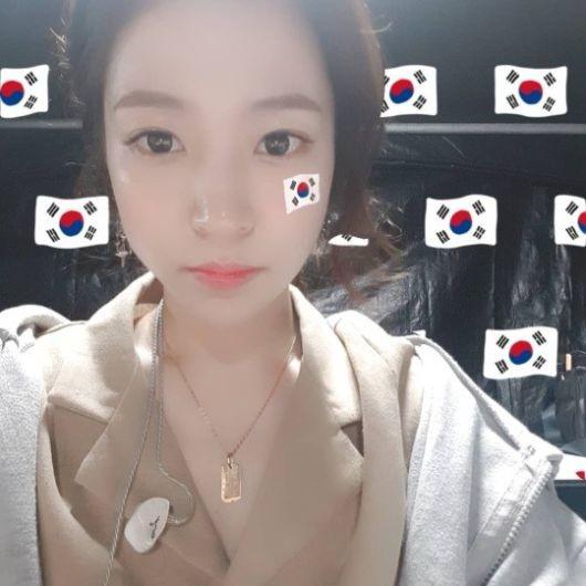 홍자는 태극기 스티커를 여러 장 붙인 셀카를 공개해 눈길을 끌었다. 홍자의 화사한 미모와 태극기가 어우러졌다.