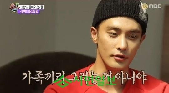 이날 성훈은 '어깨깡패'되는 법을 직접 시범보였다. 성훈은 운동 뿐아니라 다이어트에도 열을 올리는 바. 성훈은 "먹는 게 6 휴식이 3 운동이 1, 기간을 정해놓고 고단백 저탄수화물. 술과 과일은 절대 먹지 않는다."고 자신의 다이어트 방법을 풀었다.