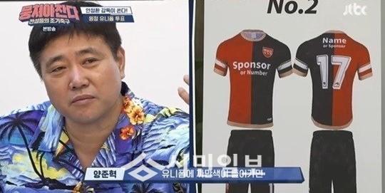 최근 방송된 jtbc'뭉쳐야찬다'에서는 원정 유니폼 투표에 나서는 모습이 전파를 탔다.