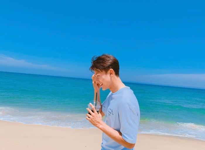공개된 사진 속 이승우는 해변가에서 포즈를 취하고 있다.