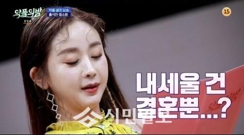 이날 함소원은 "함소원 연예인 끼도 없으면서 부잣집 연하한테 시집간 거 하나로 계속 우려먹는 느낌"이라는 악플을 낭송했다.