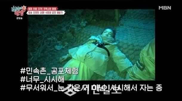 하지만 공포 체험을 진행한 후에는 혼비백산해 자리에 쓰러졌다. 결국 김수미는 중도 포기하고 아들들만 체험을 계속했다.