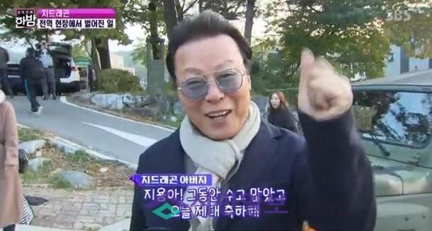 지드래곤 아버지는 “아들아. 그 동안 수고 많았고 오늘 전역 축하한다. 파이팅”이라며 카메라를 향해 환한 미소를 지었다.