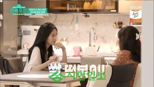 이날 반려견 레오가 꿀잠을 자고 있는 진세연을 깨웠다. 홍진경은 막 일어난 진세연의 모습에 "메이크업 좀 하고 잔거죠? 솔직히 얘기 하자고요"라고 말해 웃음을 자아냈다. 또 김나영은 진세연에게 "이 집만 카메라가 다른게 간거 아니죠?"라고 말했다. 이후 진세연이 부엌에 들어가자 진세연의 어머님은 "너도 요리 잘하긴 하더라 요리 배우고 난 다음에"라며 진세연의 요리 솜씨에 대해 언급했다.