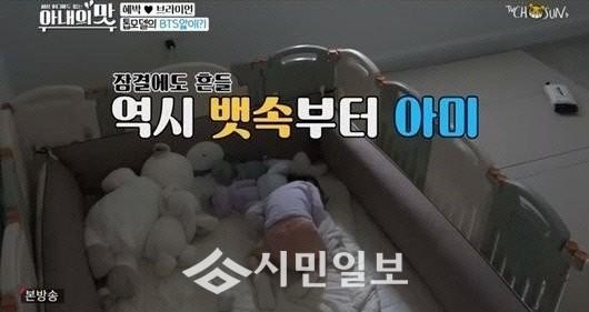 남편과 나란히 앉아 아침을 먹으며 노래를 들은 혜박. 그는 커피 하우스 뮤직을 주문하는 남편의 요청을 뒤로하고, BTS 노래를 선곡했다. 그는 “리아가 다른 노래보다 BTS 노래를 들어주면 좋아한다. 태교를 BTS로 해서 그렇다”라고 말해 웃음을 자아냈다.