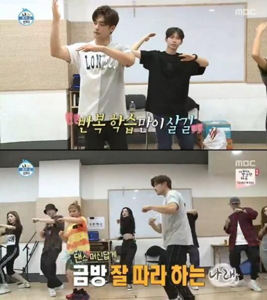 성훈이 연습에 열중한 사이 박나래가 합류했다. 박나래는 순조롭게 안무를 소화해냈다.