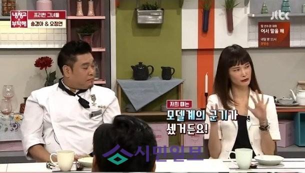 최근 방송된 JTBC 예능프로그램 ‘냉장고를 부탁해’에는 모델 송경아와 방송인 오정연이 게스트로 출연해 눈길을 모았다.