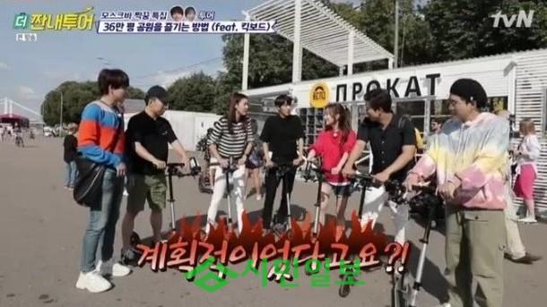 규현은 '수동 킥보드'를 대여했다고 알렸다. 자동이 아니라는 사실에 멤버들은 절망했고 분노(?)했다. "어떻게 된 거냐"는 질문에 진세연은 "다 계획적인 거다"고 재치 있게 받아쳐 웃음을 샀다.