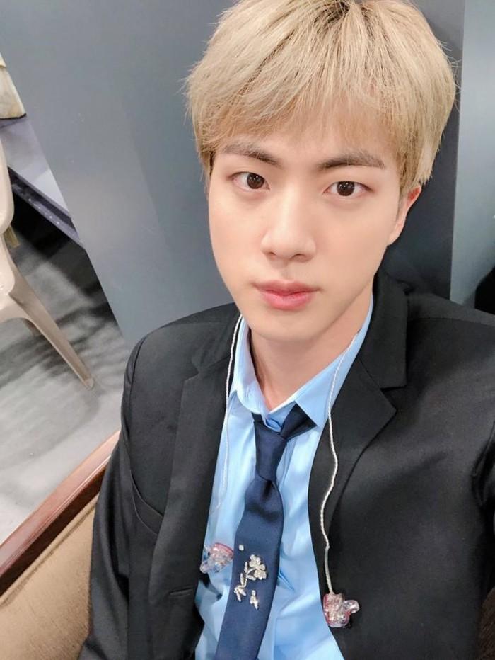 방탄소년단 진이 훈훈한 비주얼로 팬들에 인사를 전했다.