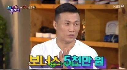 이어 그는 "명경기를 펼친 선수에게는 경기당 5천만원의 보너스가 나온다. 7경기 연속 보너스를 받은 적도 있다"고 말했다.