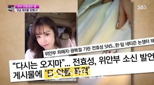최근 방송된 SBS '본격연예 한밤'에서는 전효성이 출연해 일부 일본 네티즌들로부터 악플을 받은 심경을 전했다.