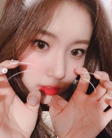 공개된 사진 속에는 근접 사진을 촬영하는 강혜원의 모습이 담겼다. 특히, 카메라 어플을 통해 고양이 수염을 그려넣은 모습이 사랑스럽다.