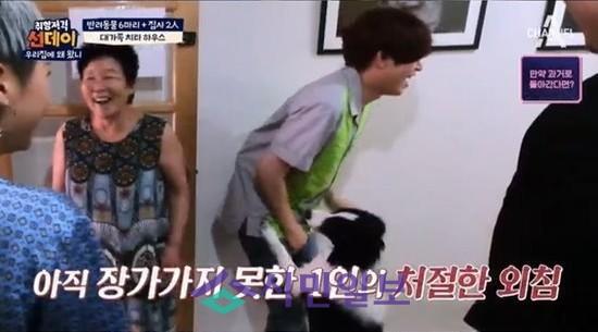 들어가자마자 이들을 반기는 것은 보더콜리 2마리였다. 사교성이 좋은 보더콜리들은 이들의 방문을 반겼다. 이 과정에서 한 마리의 보더콜리가 앞발을 들고 서서 김희철에게 다가갔고, 본의 아니게 급소를 가격당한 김희철은 고통을 호소했다.