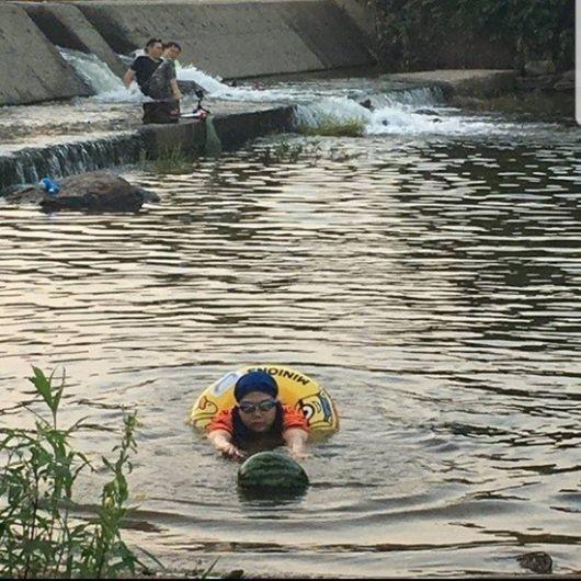 공개된 사진 속 홍현희는 물놀이를 즐기고 있다. 특히 홍현희는 튜브를 낀 채 수박을 향해 수영하고 있는 모습이 웃음을 자아낸다.