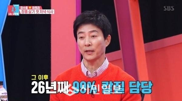 최수종은 "하희라 씨가 신혼 초에 칼질을 하다가 손톱이 베었다. 그 이후 99% 칼질을 담당하고 있다. 하희라 씨가 칼질을 하려고 하면 내가 해주겠다고 했다"고 말했다.