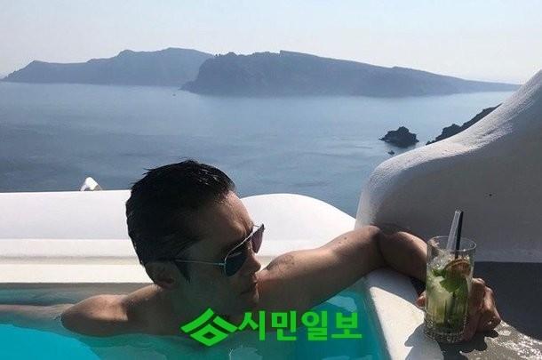 사진 속 이병헌은 바다 배경이 돋보이는 풀장에서 휴식을 취하고 있는 모습으로 감탄을 자아냈다.
