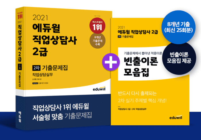 ‘2021 에듀윌 직업상담사 2급 2차 직업상담실무 기출문제집’ 수험서는 에듀윌 도서몰, 교보문고, 알라딘, 인터파크 도서 등 온오프라인 서점에서 만나볼 수 있다.