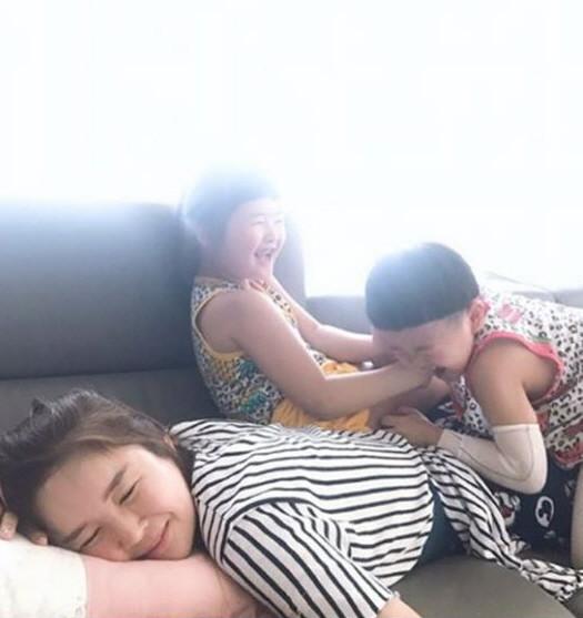 공개된 사진 속 장영란은 지친 표정으로 소파에 엎드려 있는 모습이다. 장영란의 위로 환하게 웃고 있는 아이들의 모습이 보는 이들로 하여금 웃음을 자아낸다.