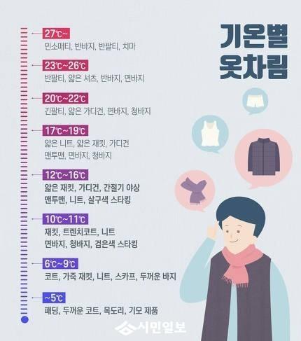 공개된 사진에는 기온별로 적정한 옷차림에 관한 정보가 담겨있어 기온에 맞게 옷을 골라입기 좋다.