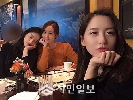 공개된 사진 속 박지현은 소녀시대 윤아, 박환희와 함께 레스토랑에서 화기애애한 모습이다.