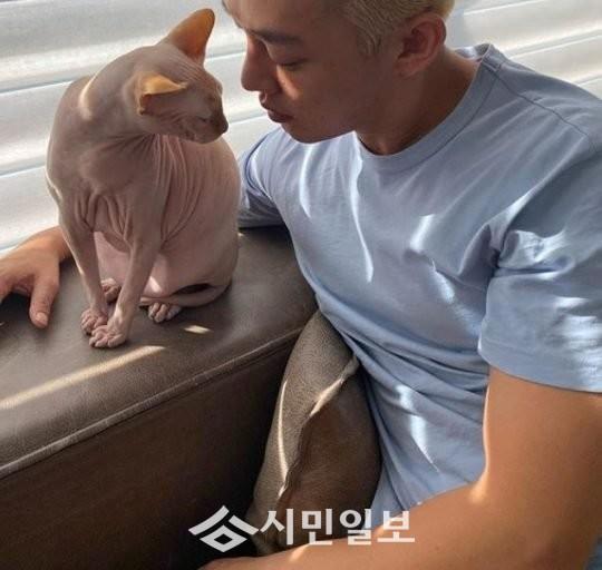 공개된 사진 속 유아인은 반려묘와 함께 여유로운 일상을 즐기고 있다.