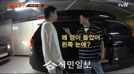 이후 도착한 이수근은 은지원의 얼굴을 빤히 쳐다보더니 "어제 술 마신 거 아니지? 왜 왼쪽 눈에 멍이 들었어?"라며 의문을 표했다. 은지원은 무슨 소리를 하는지 모르겠다는 표정으로 답을 대신했다. 이에 이수근은 다시 한 번 은지원의 얼굴을 살피고는 "아, 아이돌 메이크업 했구나"라고 알아채 웃음을 자아냈다.