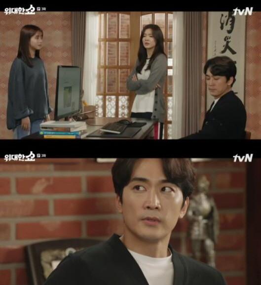 2일 방송된 tvN 월화드라마 '위대한 쇼'에서 전 국회의원 위대한(송승헌 분)은 친딸 한다정(노정의 분)과 그의 동생들인 한탁(정준원 분), 한태풍(김준 분), 한송이(박예나 분)를 받아들였다.