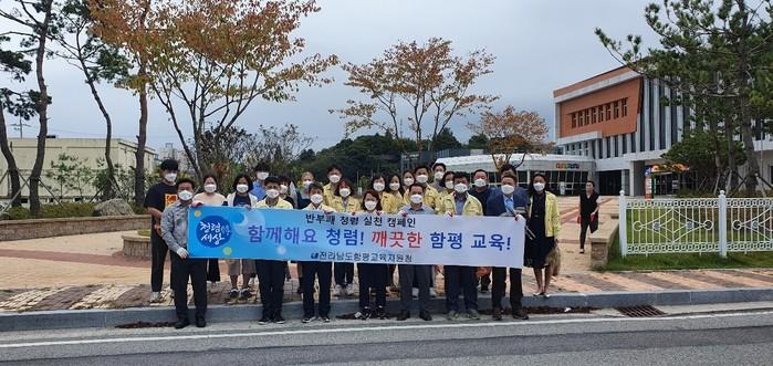 전라남도함평교육지원청(교육장 김 완)은 9월 16일 추석 명절을 맞이하여 반부패·청렴 문화 확산을 위해 전 직원이 참여한 가운데 청사 인근 도로에서 청렴 거리 캠페인 및 대청소를 실시하였다.