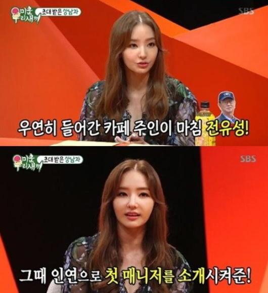 이날 한채영은 "고등학교 졸업하고 한국에 놀러왔다가 인사동에 갔다. 그 때 카페 주인이 전유성 선생님이었다"며 "우연히 들어갔는데 TV에서 많이 본 분이었다. 너무 신기해서 사인을 해달라고 했다. 그 때 선생님이 첫 매니저를 소개시켜줬다"고 밝혔다