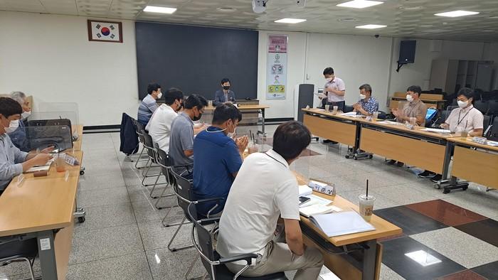 경기 김포시는 대곶면 주민들의 숙원사업으로 추진중인 대곶문화복지센터 건립사업 착공을 앞두고 공사관계자 회의를 개최했다. 사진은 참여자들이 의견을 나누고 있는 모습.(사진제공=김포시청)