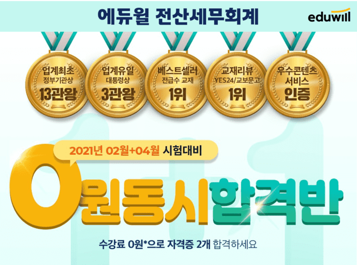 0원 동시합격반에 대한 수강 신청 및 보다 자세한 내용은 에듀윌 전산세무회계 홈페이지를 통해 확인해 볼 수 있다.