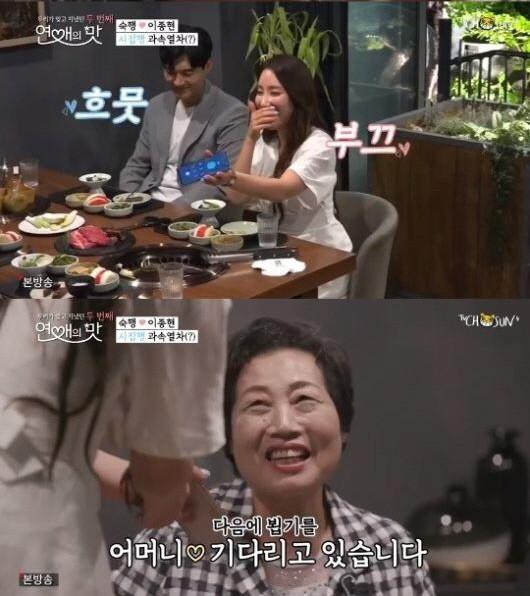 이날 이종현의 어머니는 "잘 됐으면 좋겠다"고 숙행이 마음에 듦을 적극적으로 표현했다. 급기야 이종현의 어머니는 "굴비를 사줘 너무 고마워 아버지와 통화 좀 하고 싶다"고 나섰다. 이후 숙행의 아버지와 통화하게 된 이종현의 어머니는 "우리 아들 어떠냐"고 호감도를 살피며 "다음에 뵙기를 기대한다"고 다음을 기약했다.