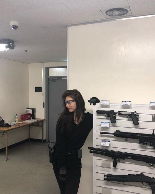 공개된 사진 속에는 드라마 촬영 준비 중 총과 함께 포즈를 취하고 있는 수지의 모습이 담겨 있다. 화장기 없는 민낯에도 청초한 수지의 미모가 눈길을 사로잡는다.
