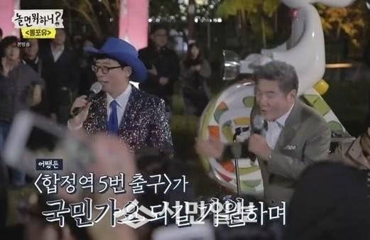 최근 방송된 MBC '놀면 뭐하니? - 뽕포유'에서는 서울 마포구 합정역 일대에서 버스킹을 여는 유산슬 유재석 모습이 공개됐다. 이날 '안동역에서' 주인공 진성은 유재석을 돕기 위해 합정역을 찾았다.