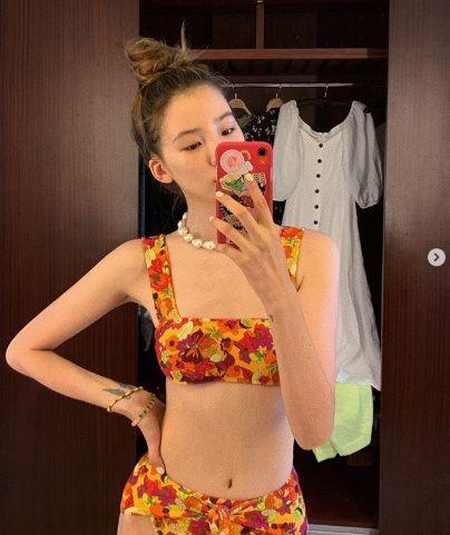 공개 된 사진 속 아이린은 몸매가 훤히 드러나는 비키니 수영복을 입고 셀카를 찍고 있다. 아이린의 깡마른 몸매가 시선을 사로 잡는다.