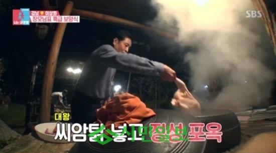 이상화의 부모님은 사위 강남을 위해 씨암탉으로 끓인 삼계탕뿐만 아니라 매운탕부터 소고기까지 잔칫상에 버금가는 저녁을 준비했다.